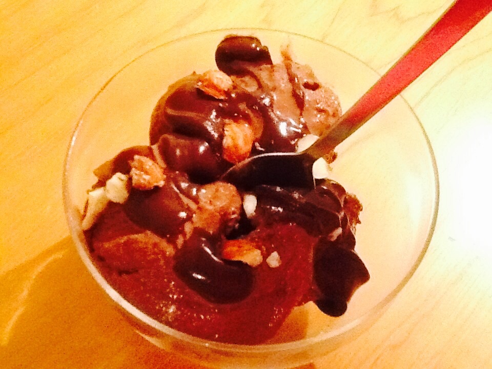 I made my ice cream using a little machine given to me by my wonderful cousin. Ever seen those banana-soft-serve makers? It’s like that. Because I don’t eat lot of fruit, I thought I’d better get experimenting with some other frozen concoctions!